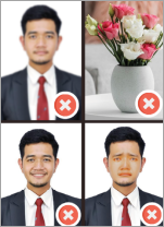 The top of the head, including the hair, to the bottom of the chin must be between 50% and 60% of the image's total height.